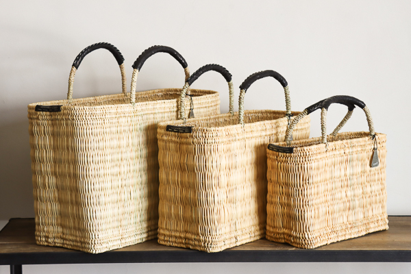 モロッコ ストローバスケット 深L (black)|warang wayan