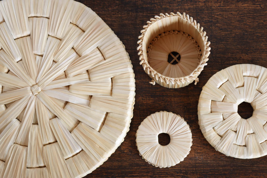 モロッコ ストローバスケット 浅S (dark brown)|warang wayan