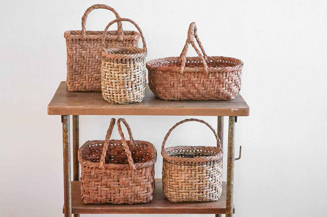 宮城 篠竹と桜のかご (楕円-浅-小)