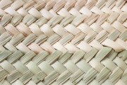 ほそく割いたヤシの葉を編んで長い帯を作り、それをぐるぐると
