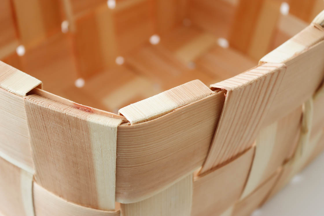 木の割材を使ったかご作りは、ヨーロッパなど寒い地域に発達した
