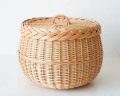 丁寧な仕上がりの、ふた付きのまるいバスケット。