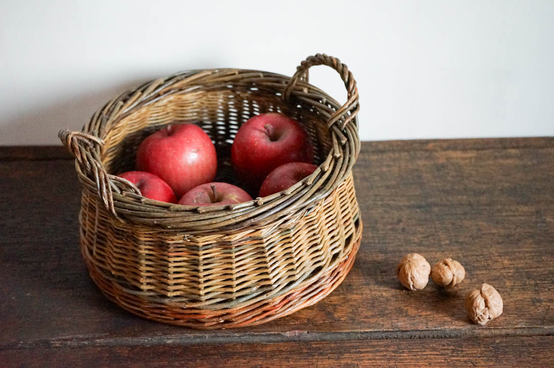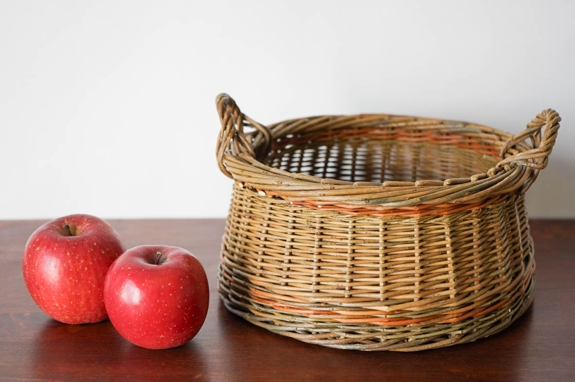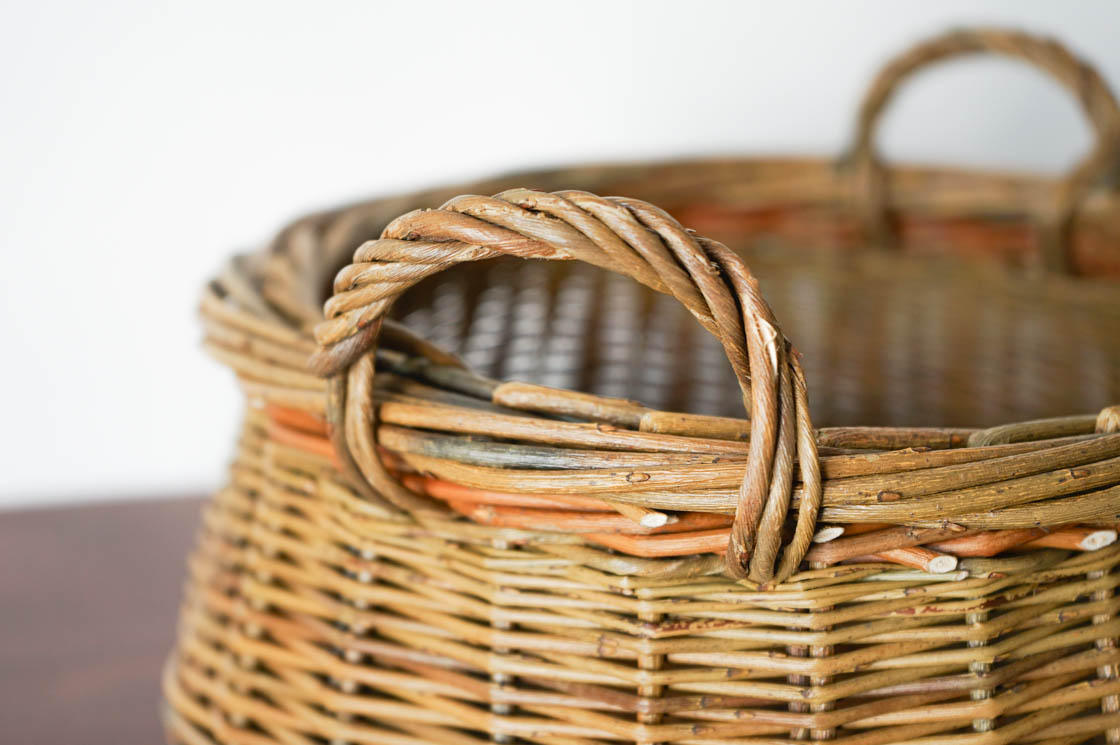 クルミかご、と名付けられた手付きの丸かごです。