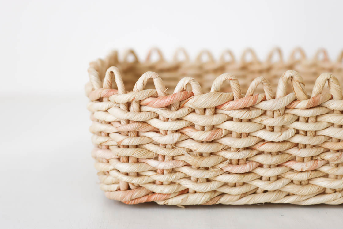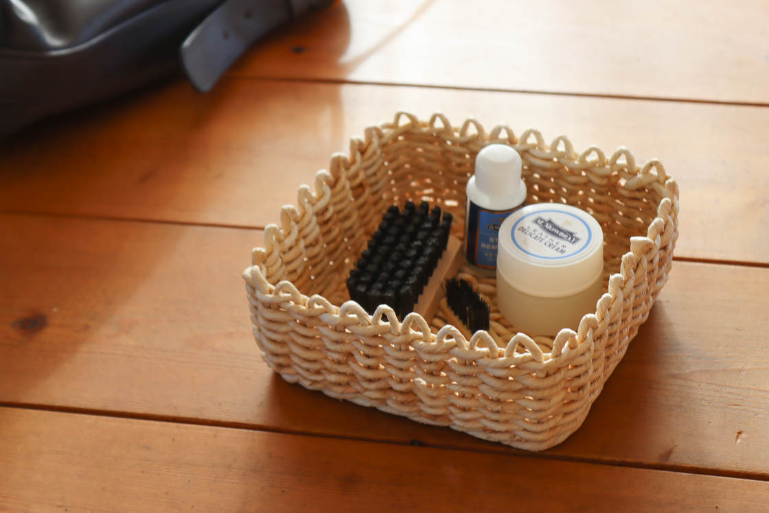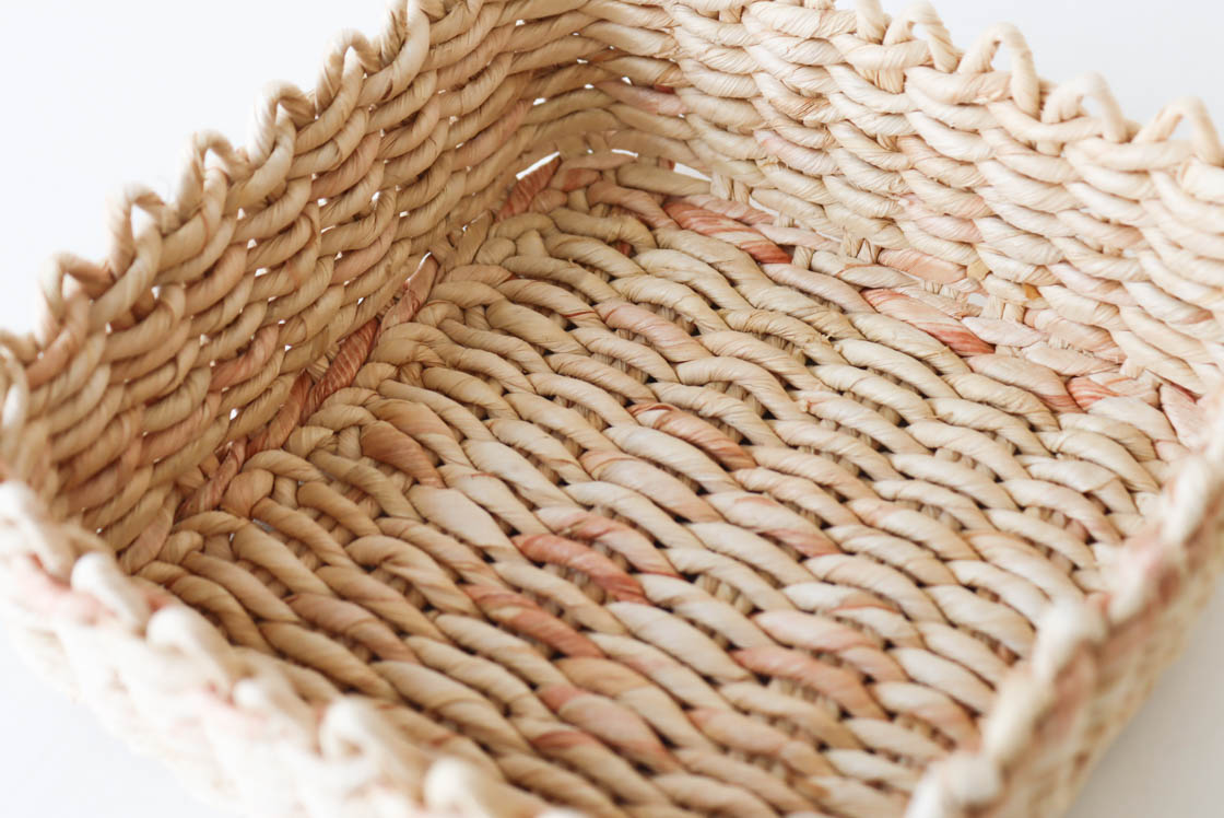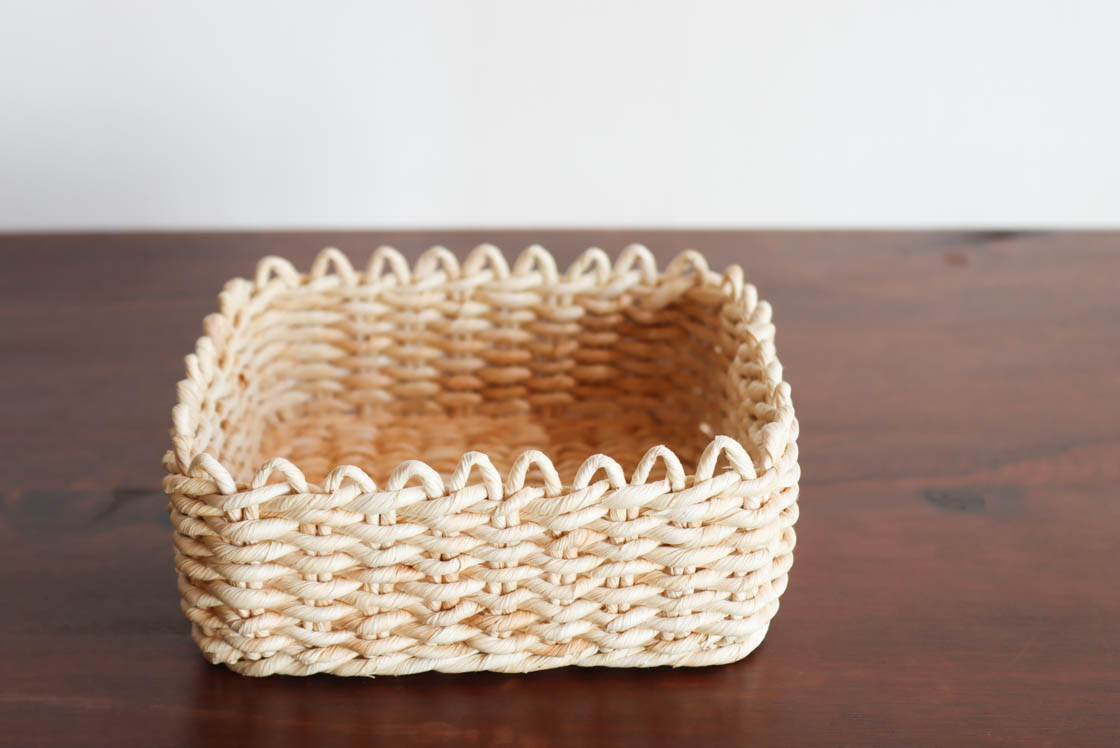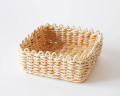 本品は、細めの紐で編み上げた、正方形の小さなトレイ。