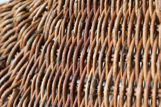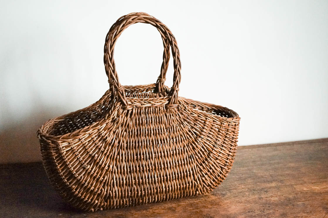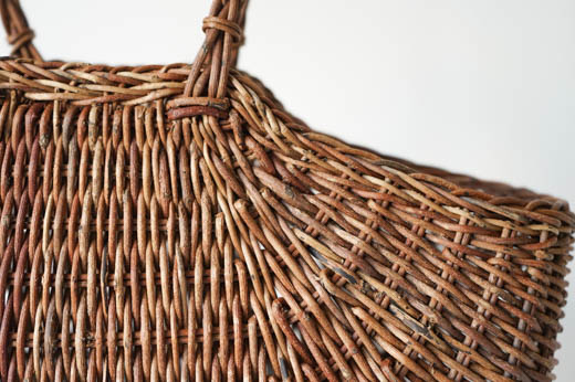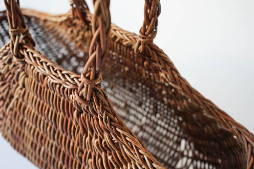 こちらは、織編みと呼ばれる技法で編まれた手提げかご。