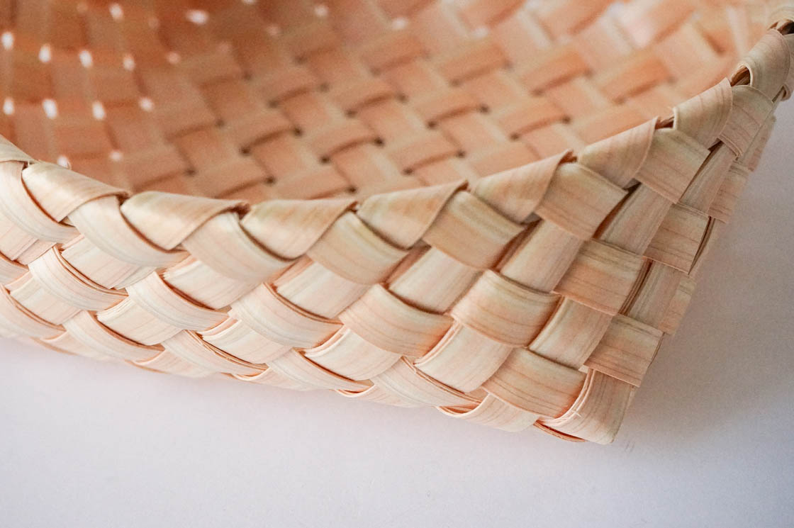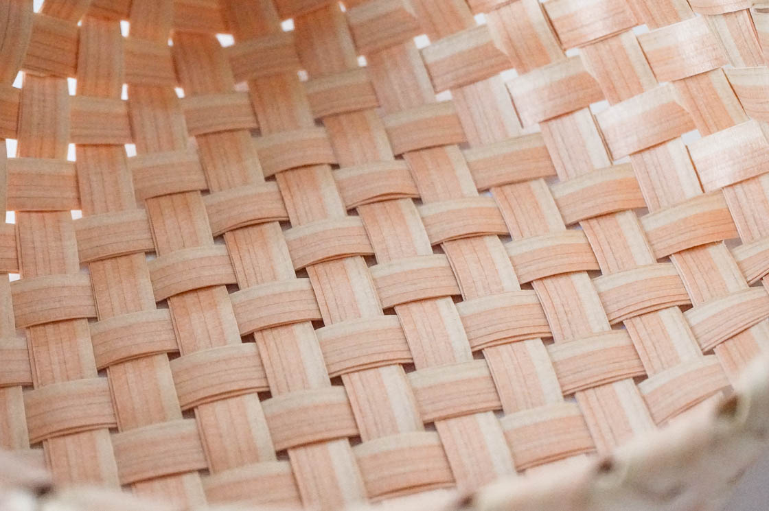 ヒノキの板をカンナで薄く削った編み材は、