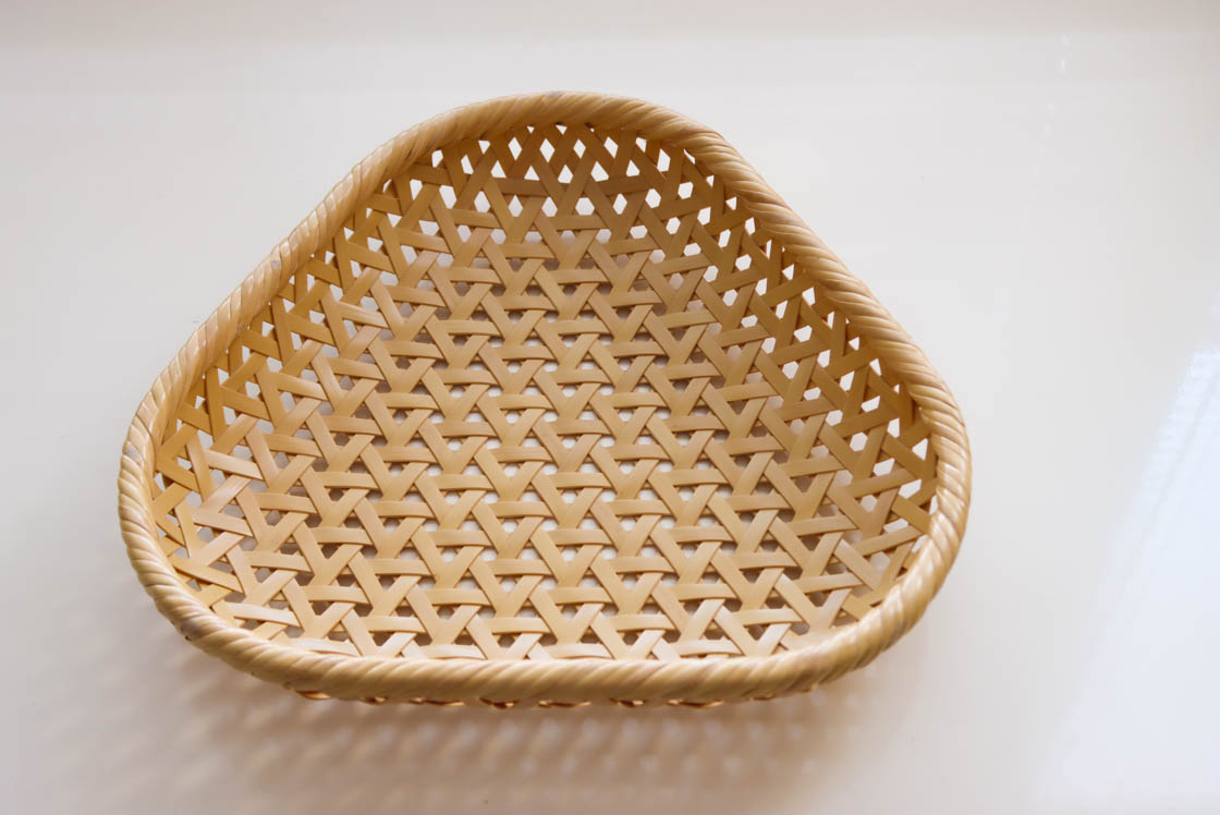 こちらは、三角形に仕上げた亀甲編みの盛りかごです。