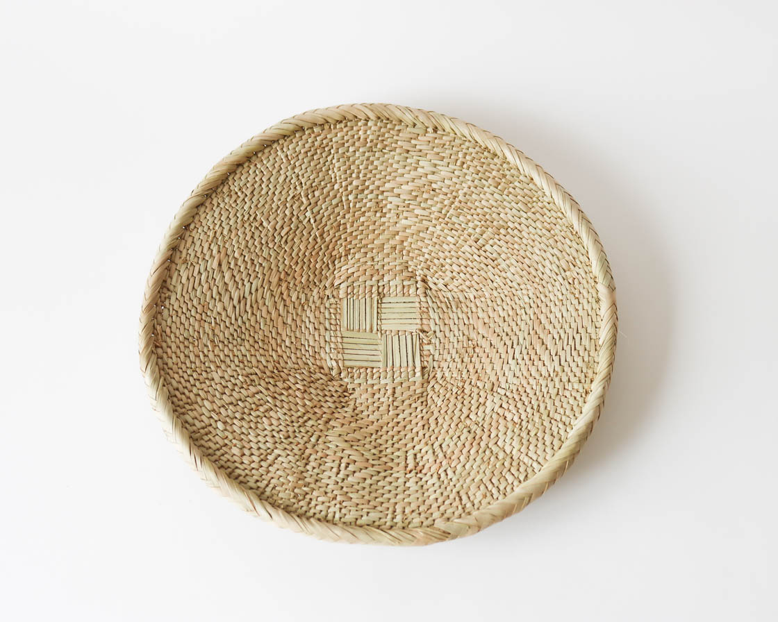 イララ椰子と呼ばれるヤシの葉を、細く割いて編み込んだ、こまやかな模様編みが特徴。