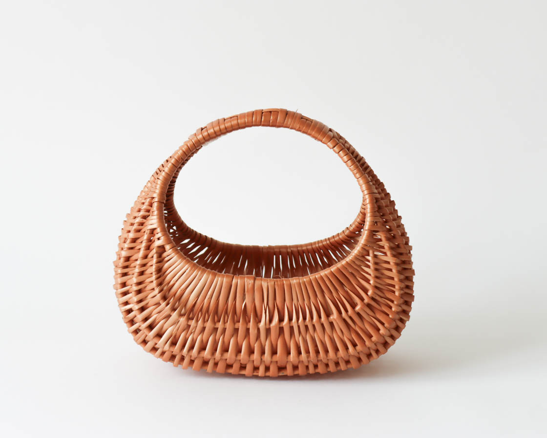 つややかなヤナギで編まれた、丸くやさしいフォルムからは、手に持っても、置いた時にも、特別なかわいらしさが伝わってきます。