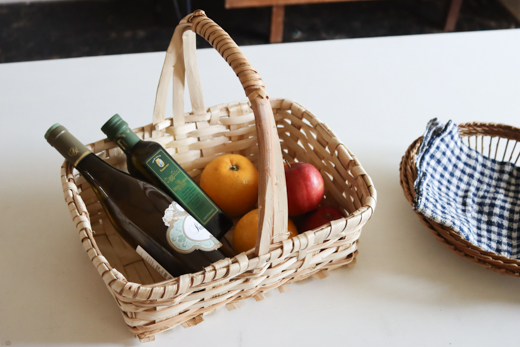 淡いベージュの栗材が目にやさしく、握りやすいハンドルにも特徴が感じられる、地域伝統のかごです。