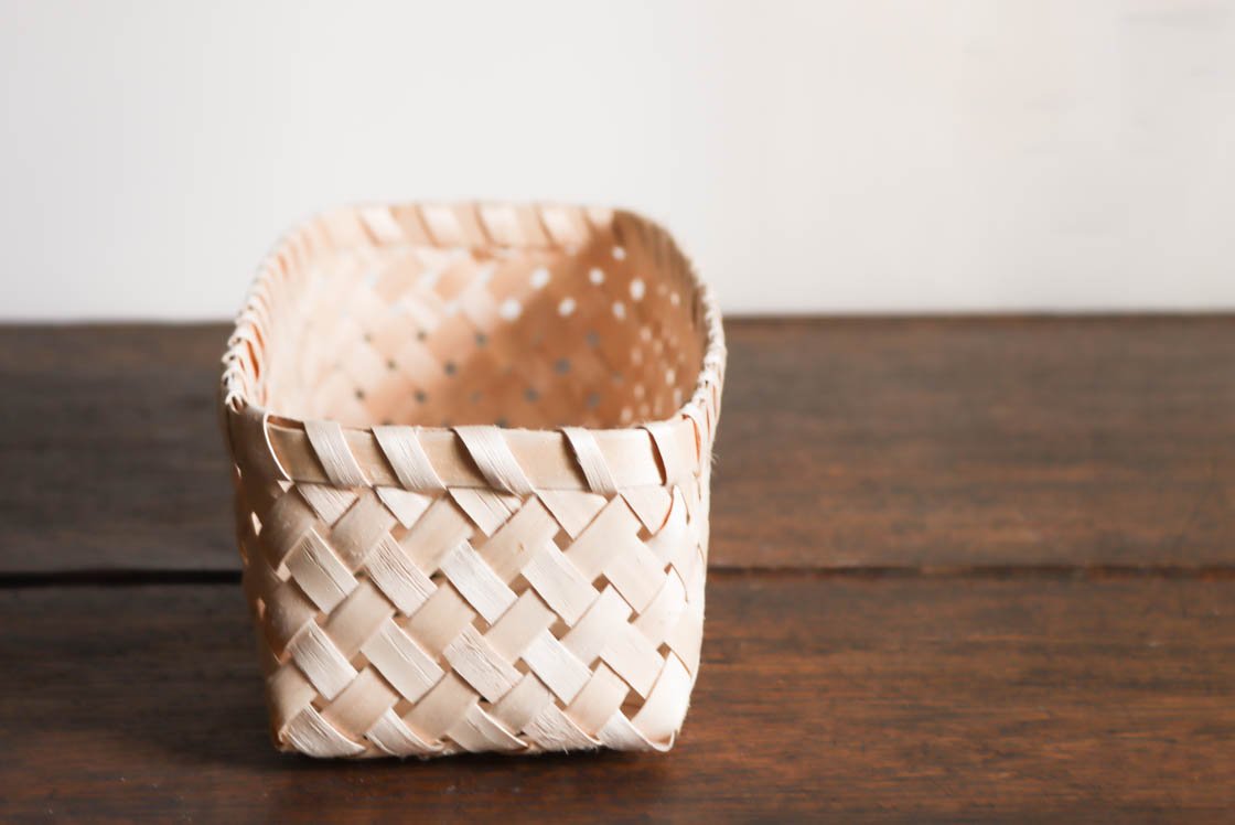 竹製品やつる細工が多い日本のかごの中では珍しく、樹木の割材を使って