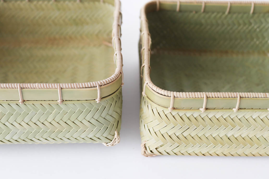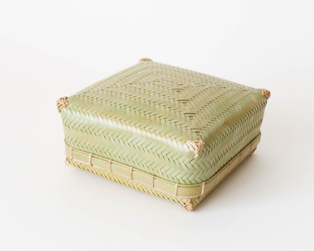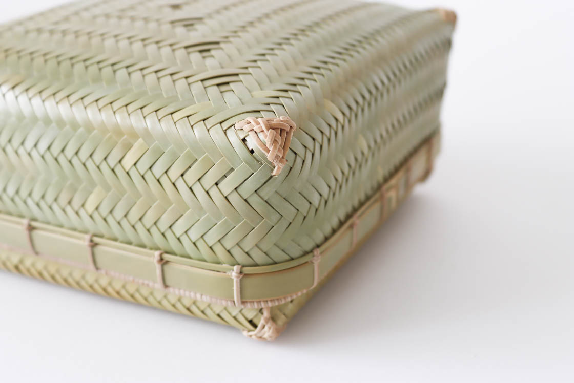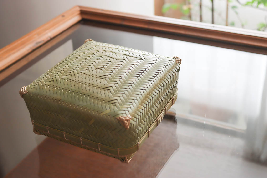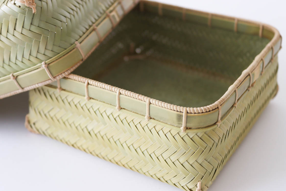 こちらは、「網代編み」で端正に編み上げたお弁当籠。これまで20年以上作り続けてきたという蓋付きのかごです。