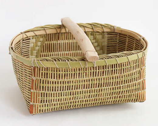 角を直角に立ち上げる独特の技法は、「箕」づくりの、「アクド」と呼ばれる角部分の作りに倣っています。