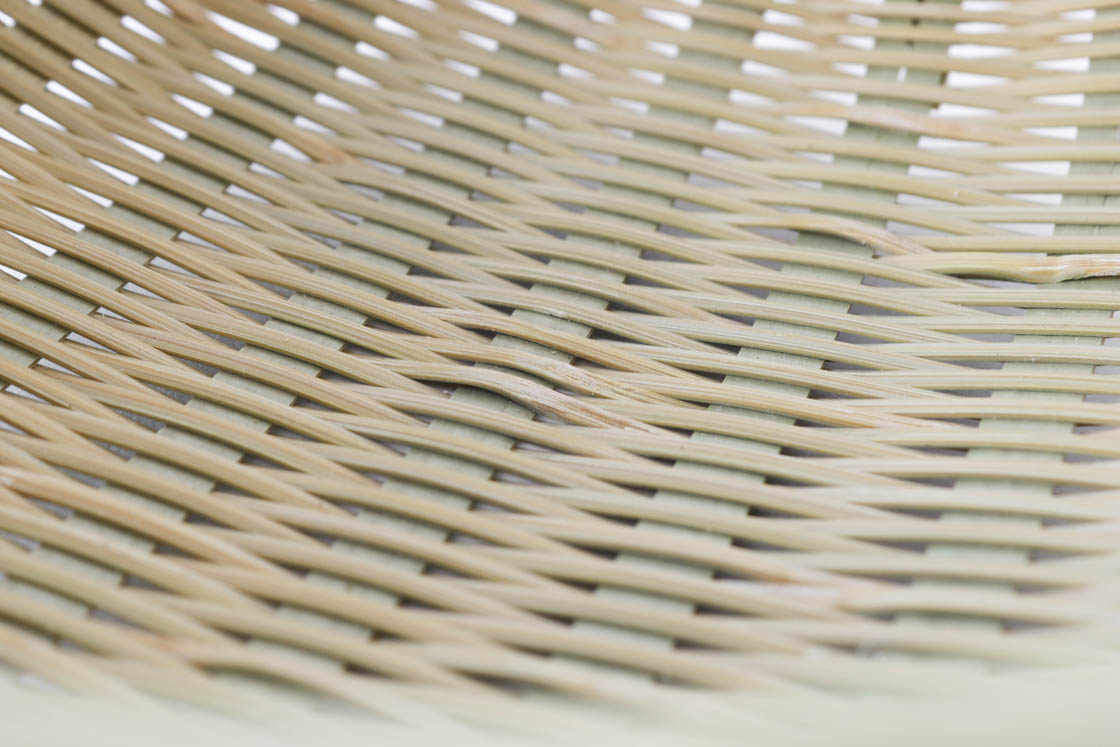 竹ひごの内側は、断面が三角になるように「面取り」がされています。水切れと手当たりを良くし、編み目のあいだにモノが挟まりにくい効果があります。