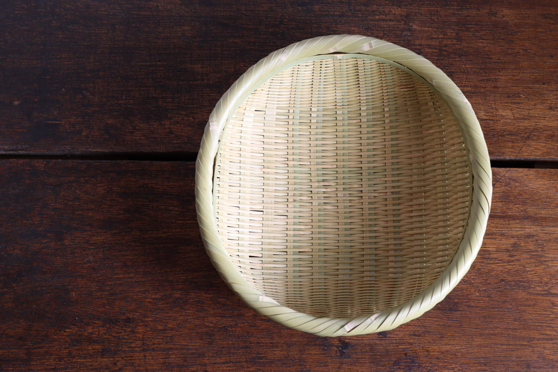 洗う、濾す、干す、水を切る、乾かす、など、すぐれた機能と耐久性が求められる笊は、竹細工職人の技術の結晶。見た目はシンプルでも、たくさんのこだわりが詰まった究極の道具といえます。