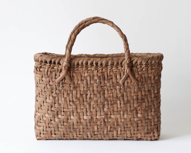 本品は、やまぶどう手提げの代表的なデザインといえる「網代編み」で仕上げた一点。