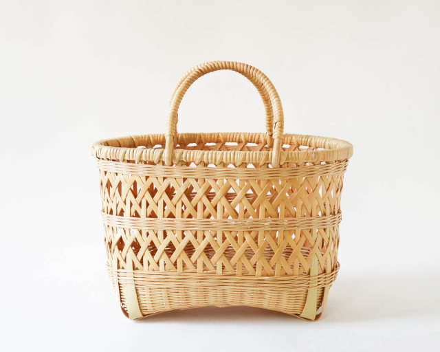 大分県・湯布院の工房「竹聲館」にて制作された、「縄目差し」の手提げかご。