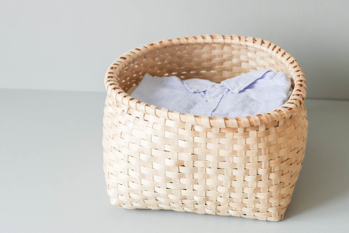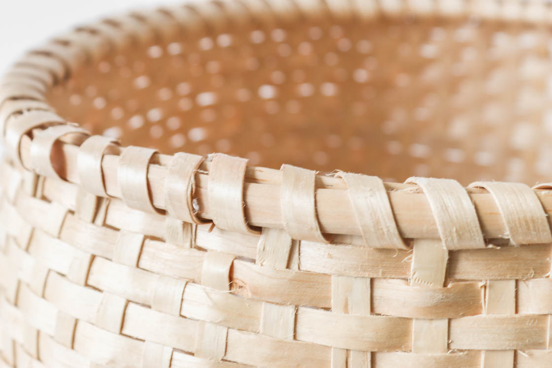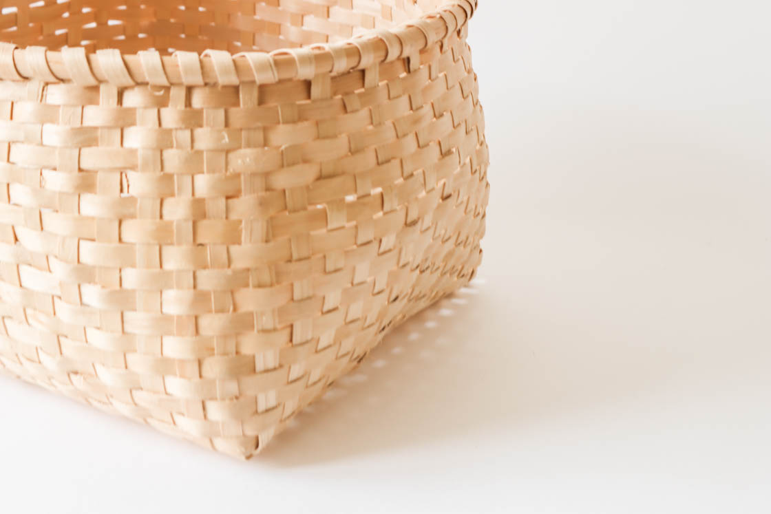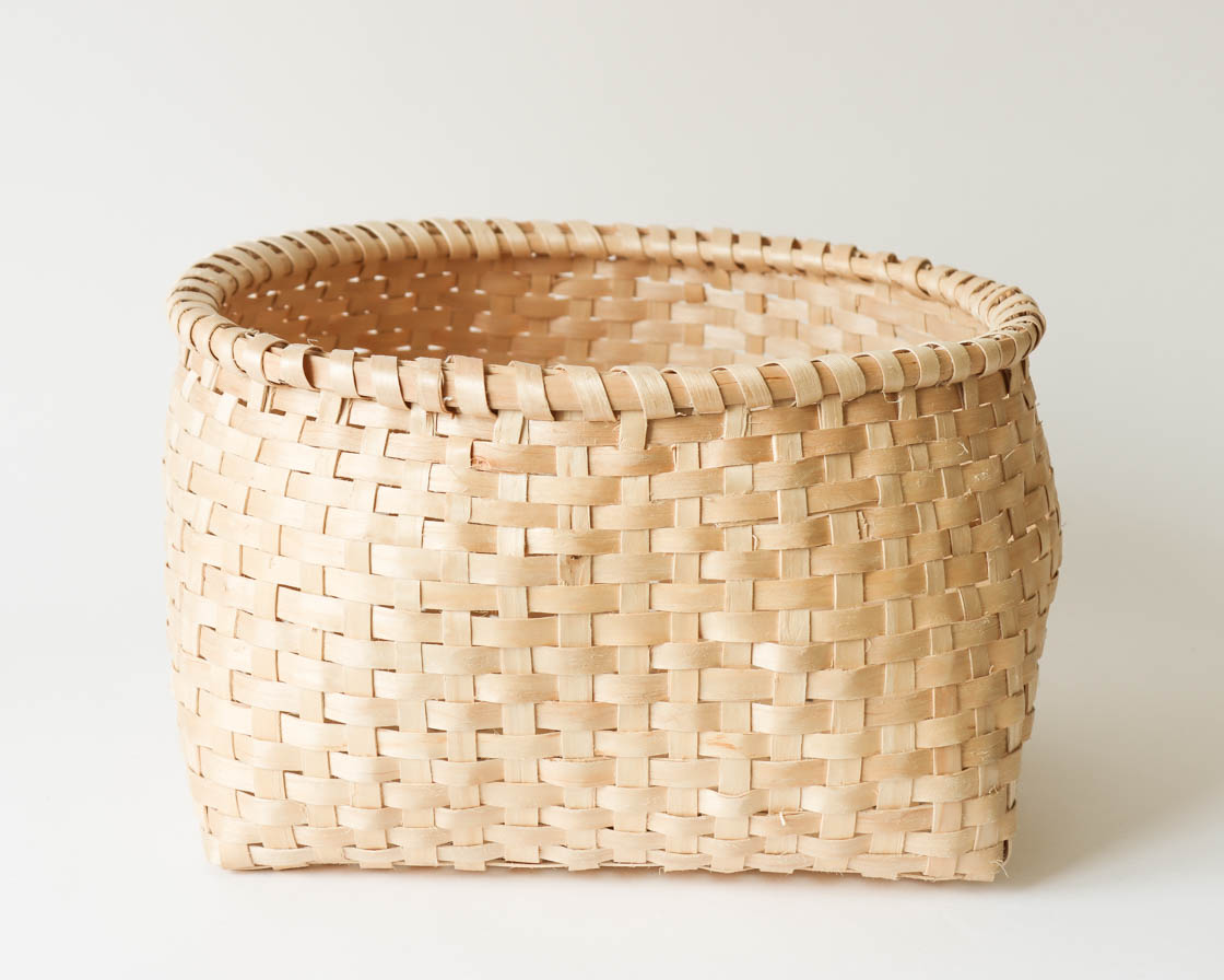 本品(中サイズ)は、イタヤカエデの若木を編んだもの。