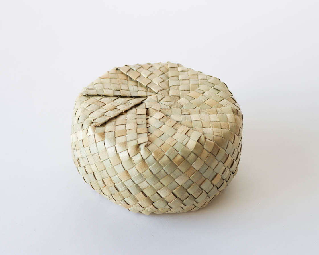 熱帯に育つ「カラグモイ」の葉を編んだ、ふた付きのかごです。