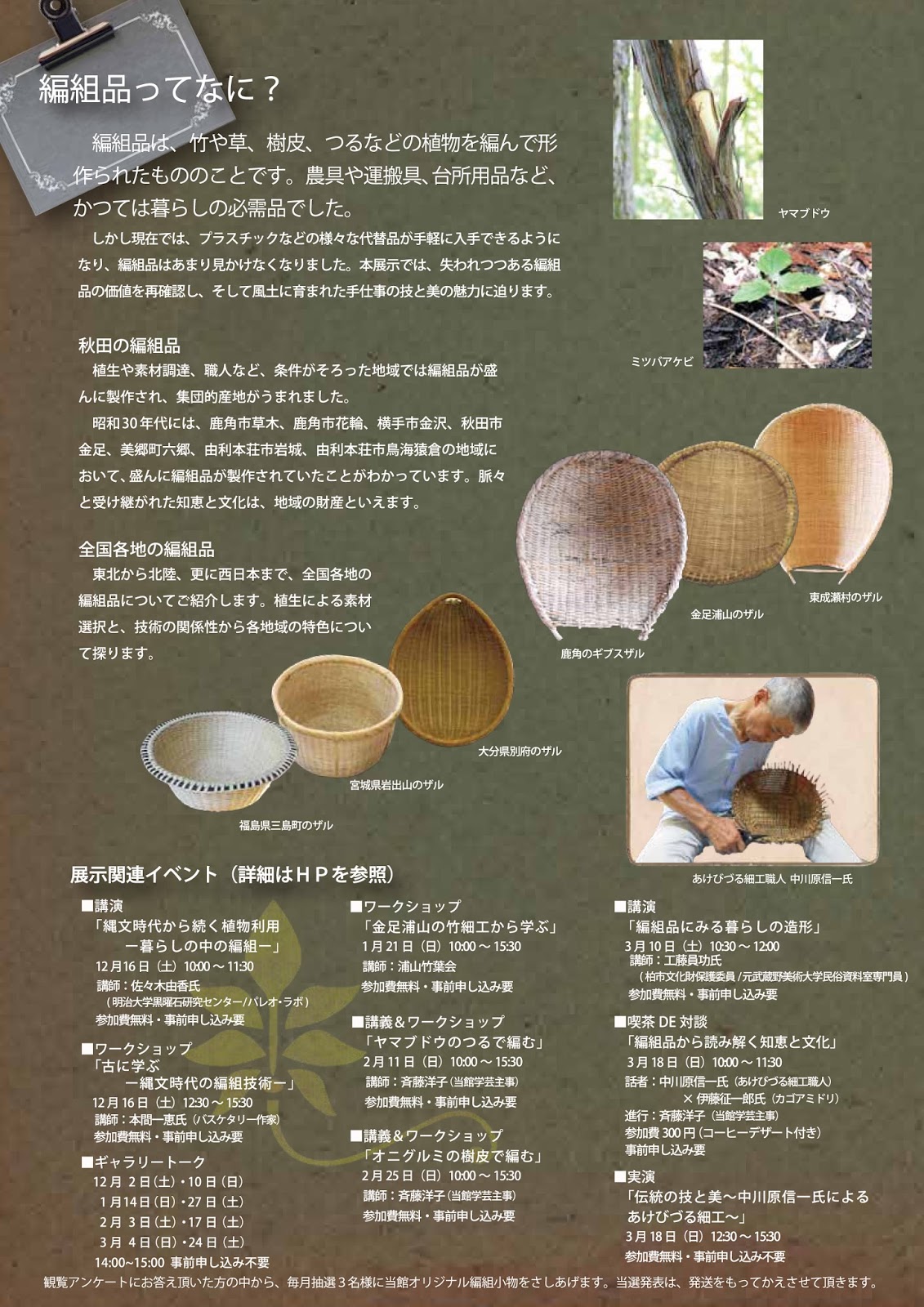 また、3月18日(日)は、「編組品から読み解く知恵と文化」という