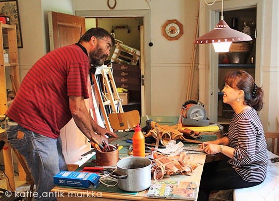 Bror Forslund氏に師事し、ネーベルスロイド(白樺樹皮工芸)を学ぶ。