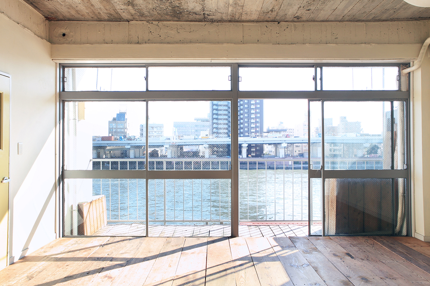 アトリエの窓からは、隅田川とスカイツリーの絶景も広がっています。