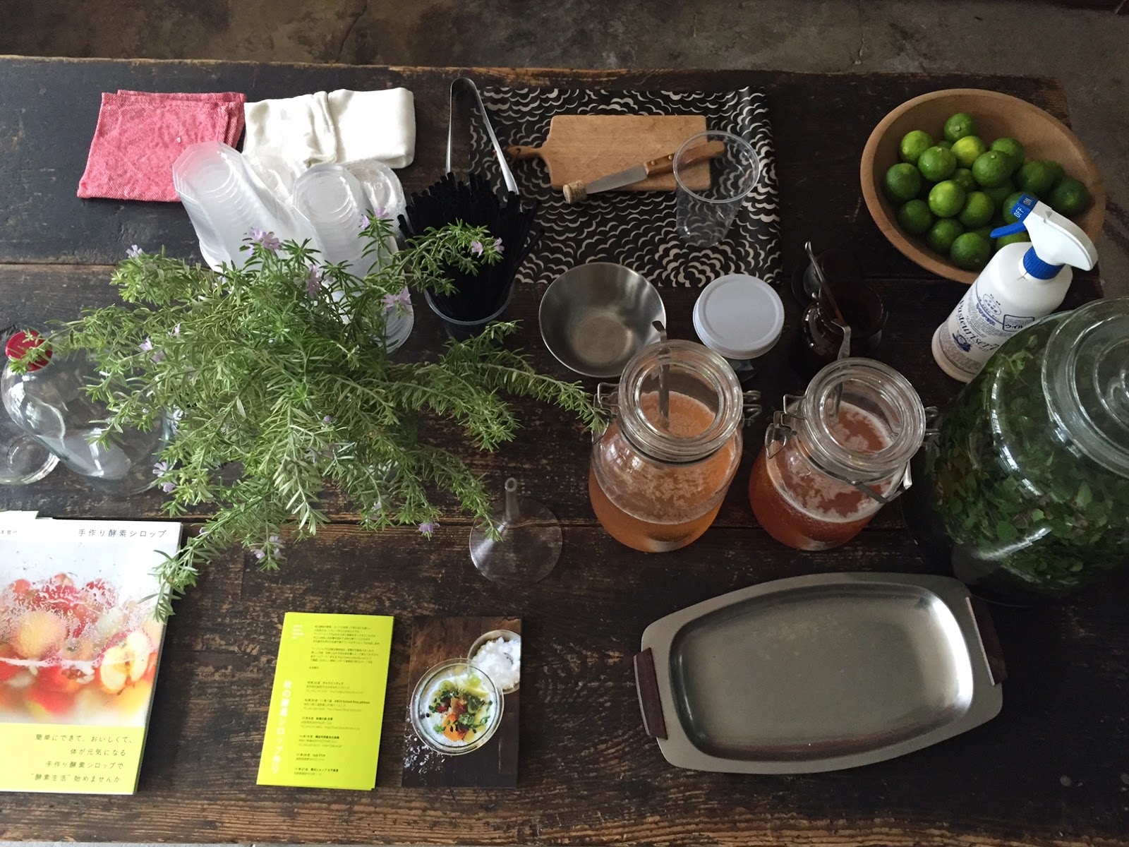 オープン記念として、杉本雅代さんによる酵素シロップスタンドもオープン。旬の「桃」と「ぶどう」をご用意いただきました。