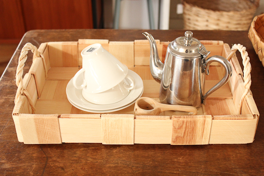 壁に掛けられるかごや、床置きできる大きなかご、食卓で使うトレイなど、