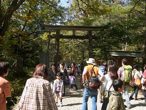 秋の行楽シーズンとあって、奥社の入口付近は、いつになくすごい人出でした。