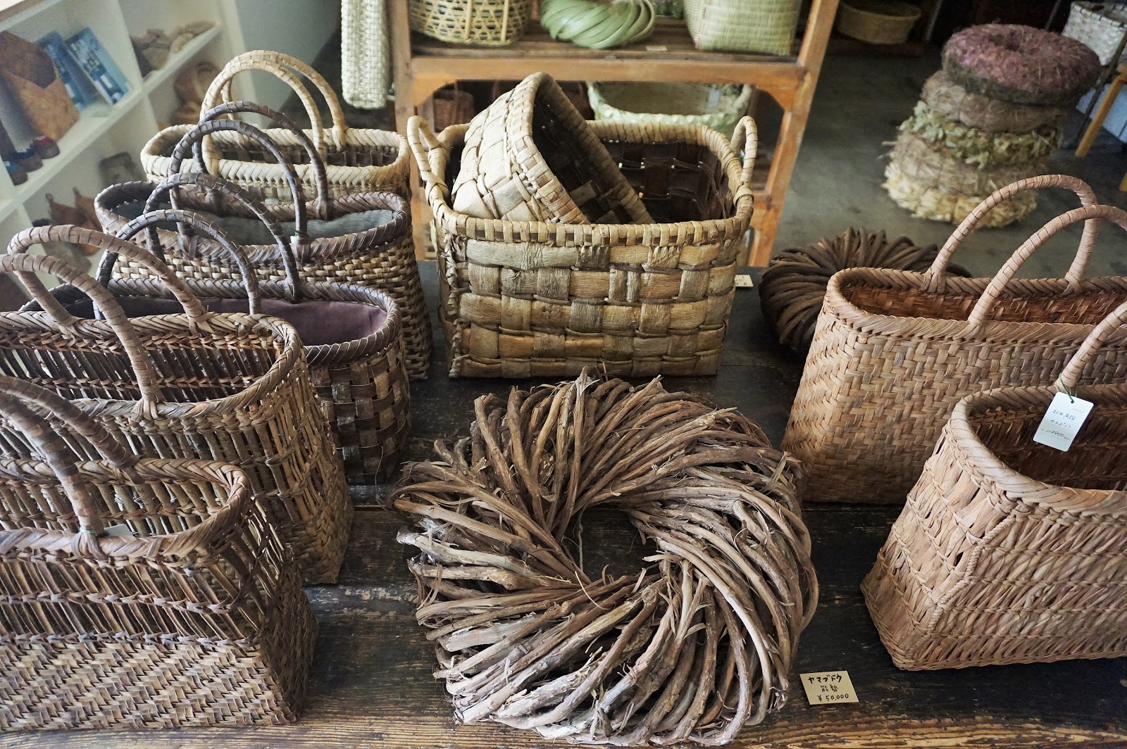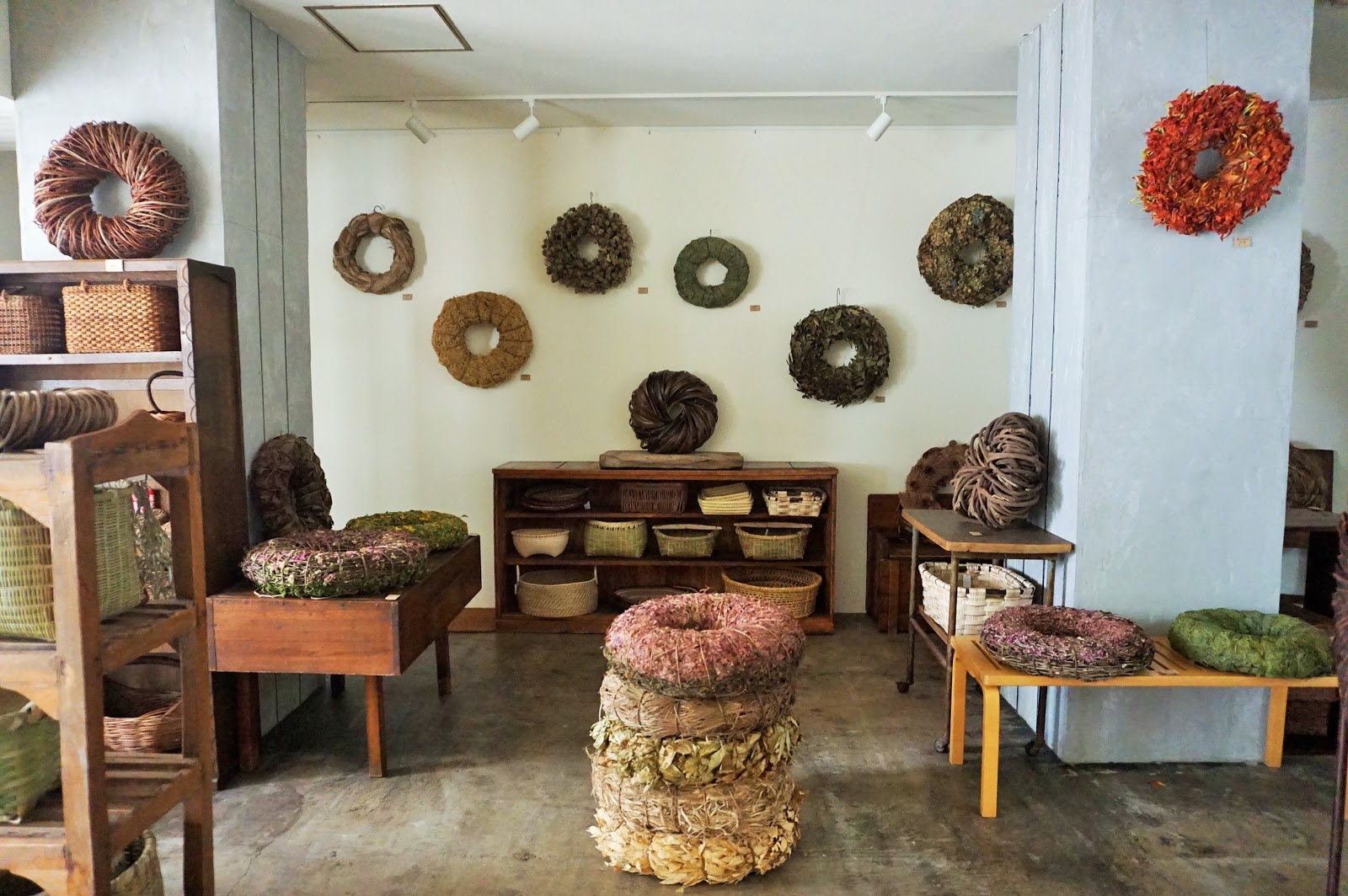 店内はいま、大小さまざま50種類もの植物のリースで満ち満ちています!