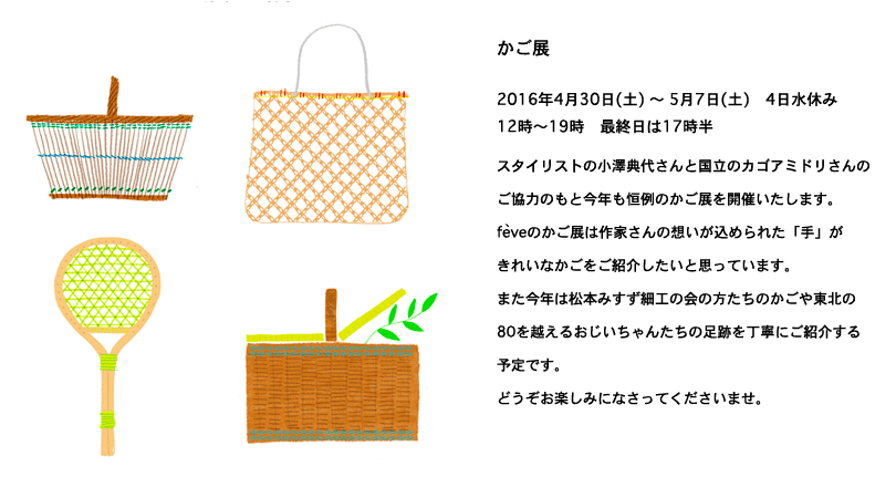 今年も、吉祥寺・ギャラリーフェブで行われる「かご展」に