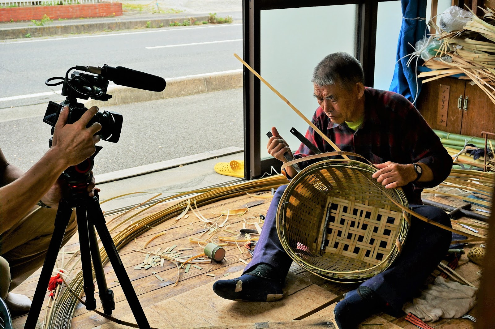 今回は二日間の取材で、かごづくりの工程の撮影が終了しました。