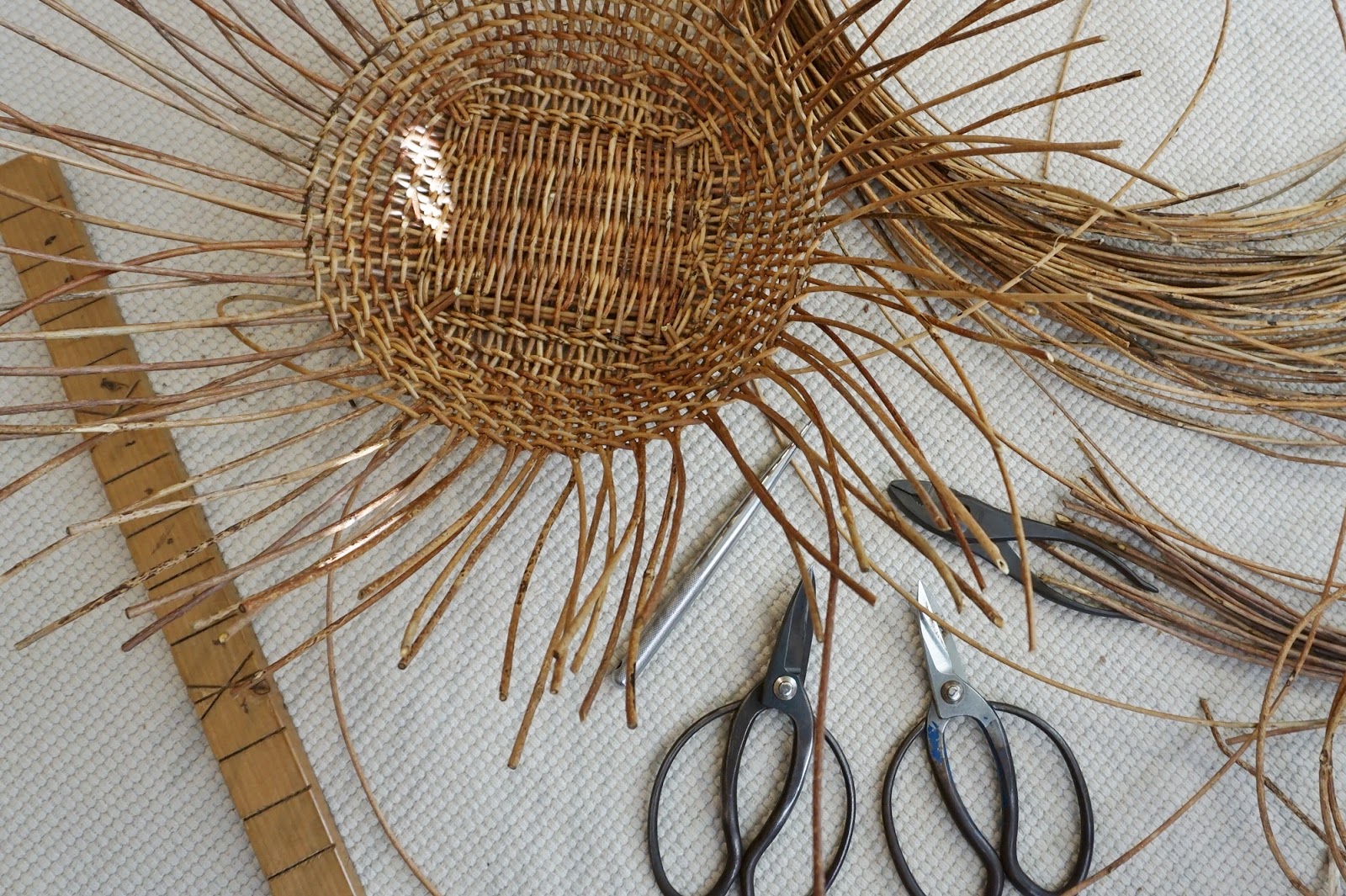 かごづくりをはじめたきっかけや材料にまつわる話はもちろん、