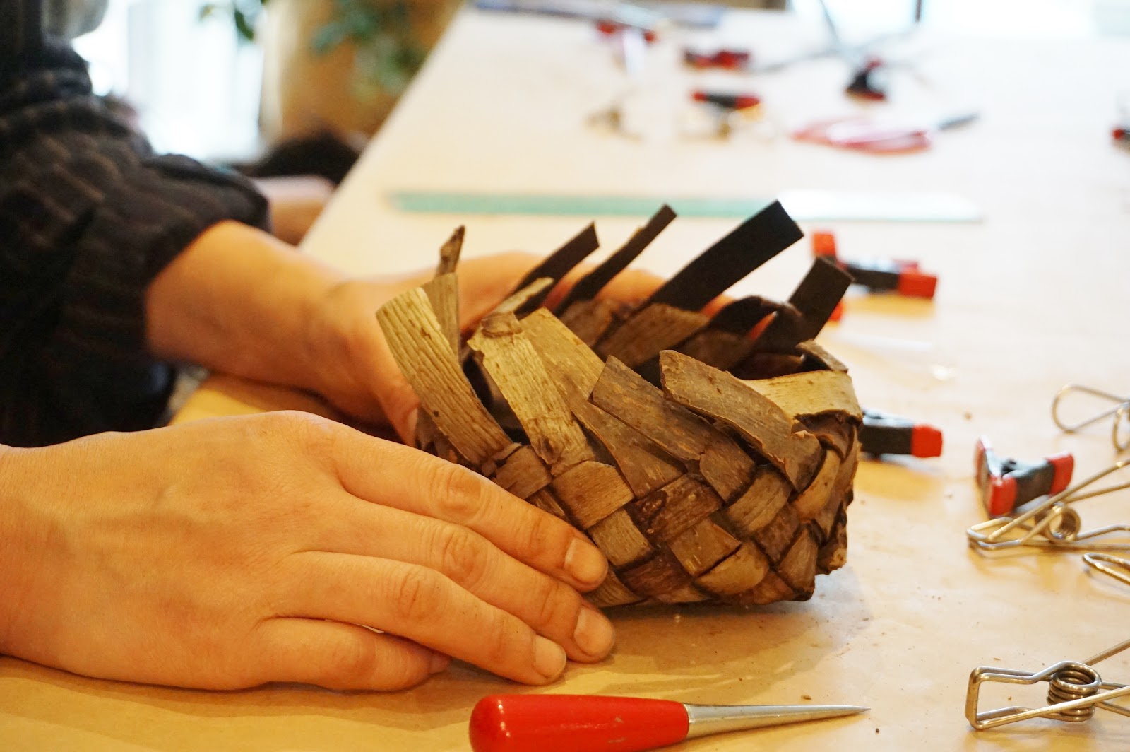 「クルミ樹皮のカゴを編む」ワークショップが終了しました。
