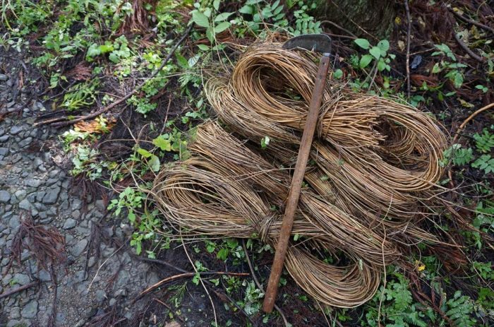 ブドウやクルミ樹皮の採取時期は、年々早まっていて、温暖化の影響は間違いないと思えますし、地面を這って成長するあけび蔓は、採取できる量が減っているだけでなく、質そのものも変わってきていると聞きます。