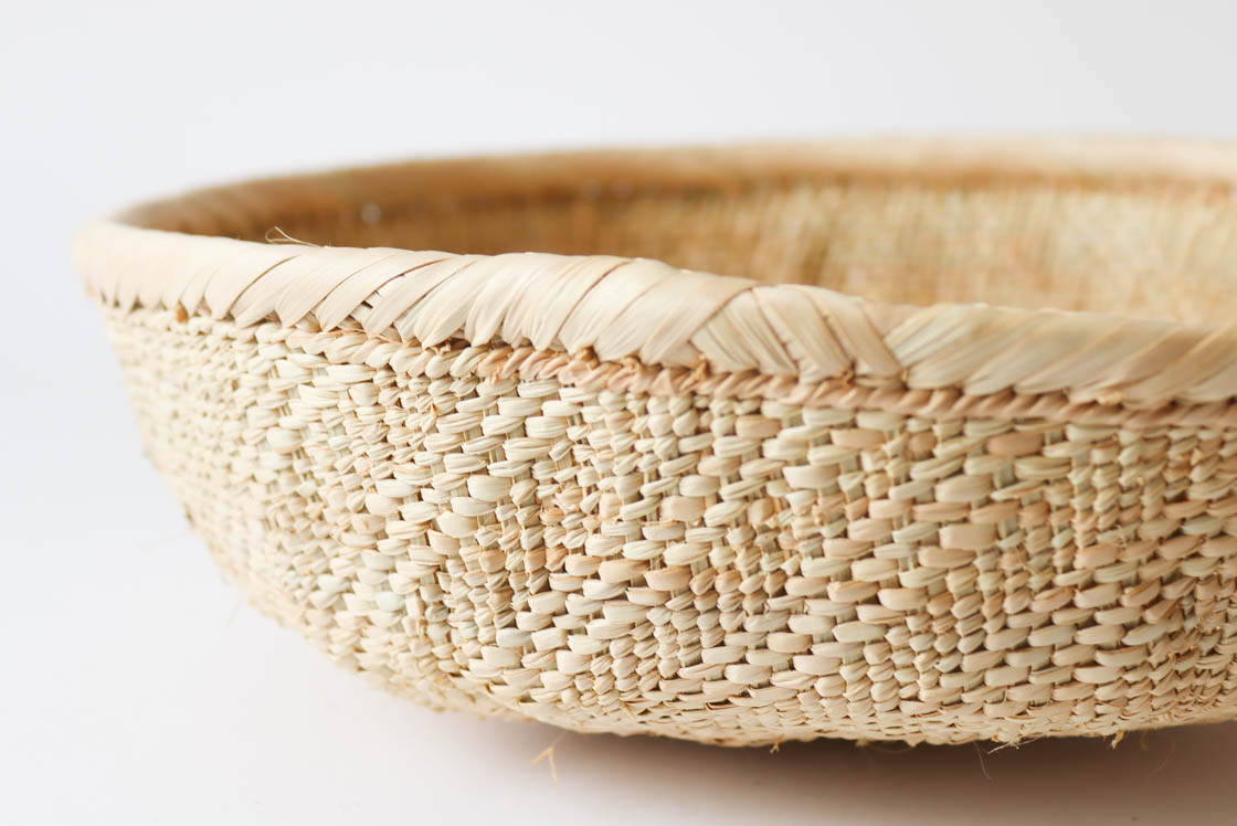 「イララ椰子」を素材とする細やかなかご作りを続けているのは、ビンガ地方の女性たち。雄大なザベンジ川に沿いに暮らす、トンガ族とよばれる人びとの手仕事です。