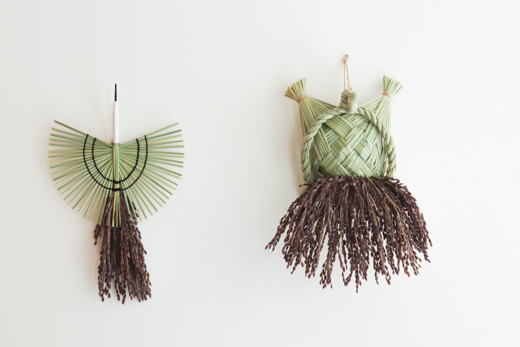 古代の神話のなかに登場する、神聖な稲束をイメージした作品。140本もの穂を束ね、稲の豊かさ、みずみずしさを表しています。