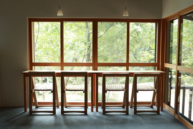 場所は、安曇野市・穂高駅から車で約10分ほど。北アルプス山麓の森の中にたたずむ、ヒュッテのような心地よいカフェです。