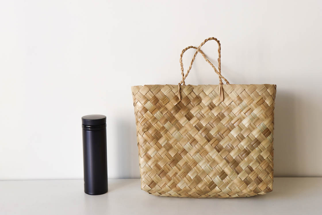 また、カラグモイの仲間である「バリュウ」の葉を編んだ、カゴバッグも新入荷。