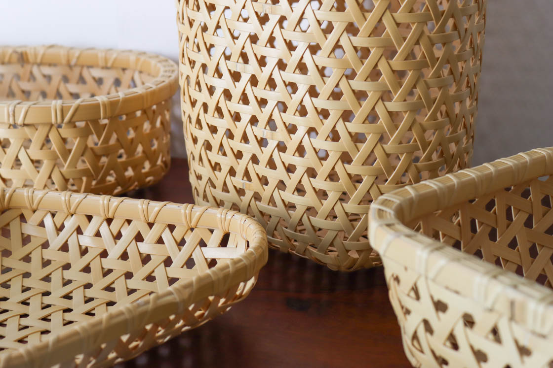大分県別府市で活動している吉田草史(かやふみ)さんより、「亀甲編み」のかごが各種入荷しています。
