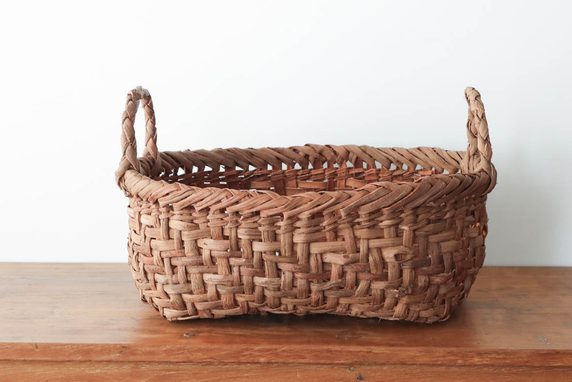 ふっくらと丸みをおびたシルエット。縁かがりに使われているヤマブドウのコントラストも美しい一点。