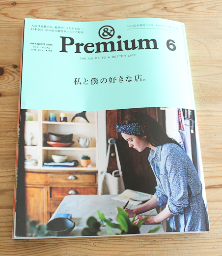 2016.4.25 『&Premium』2016年6月号 マガジンハウスの『&Premium』 2016年6月号に掲載いただきました。 特集「私と僕の好きな店」の号。 「ピンポイントな専門店」のコーナーで、ビンテージランタンのお店など こだわりの専門店さんに並んでご紹介いただきました。