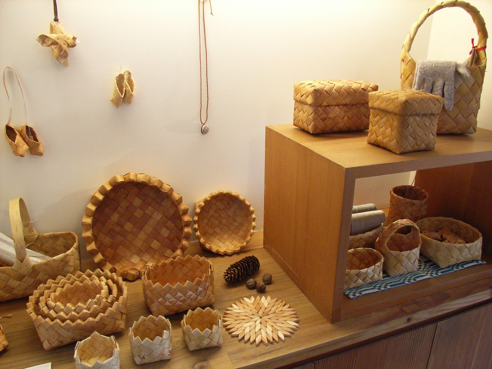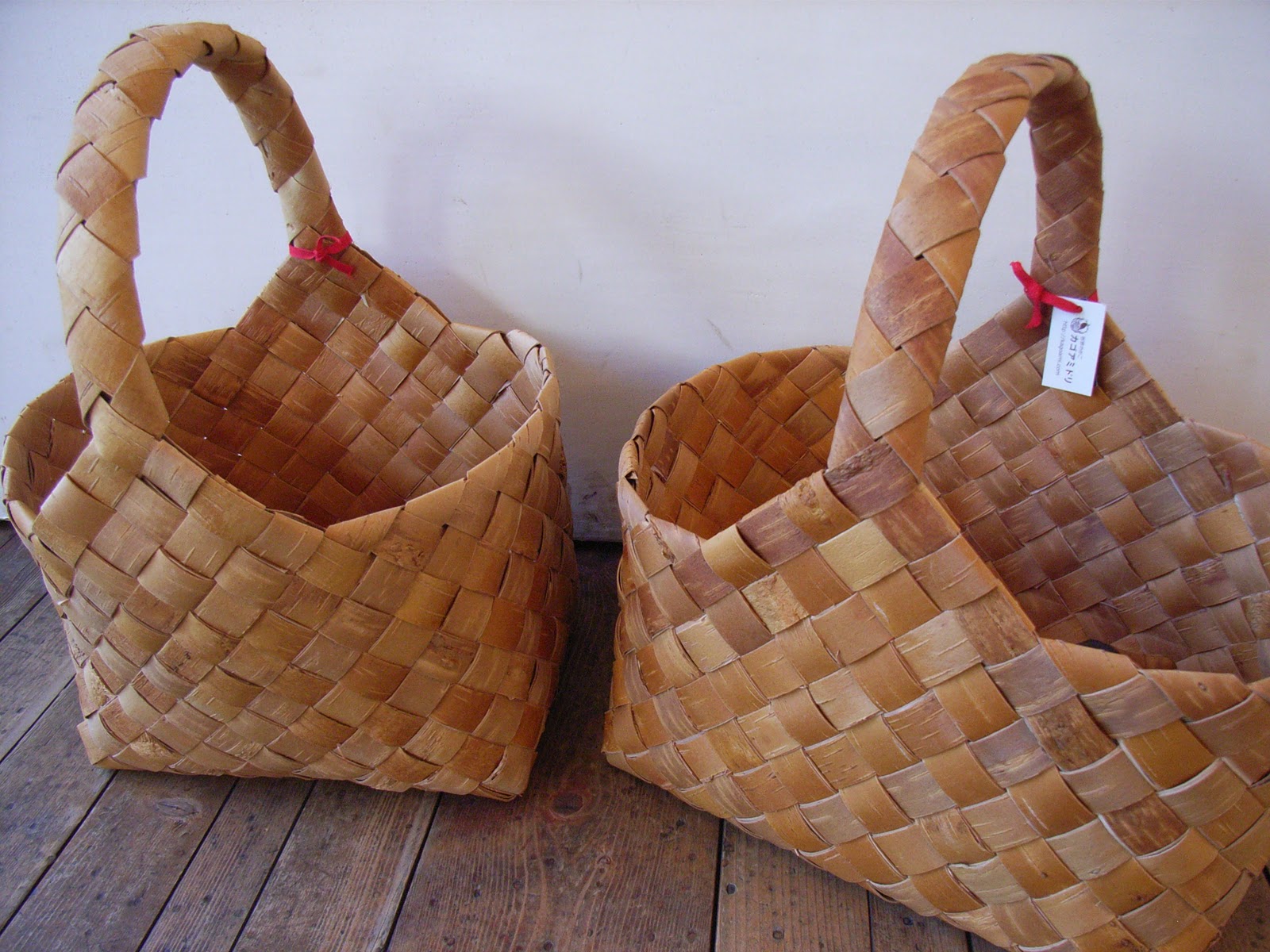 ずらりと並んだ白樺のかごたちの様子です。